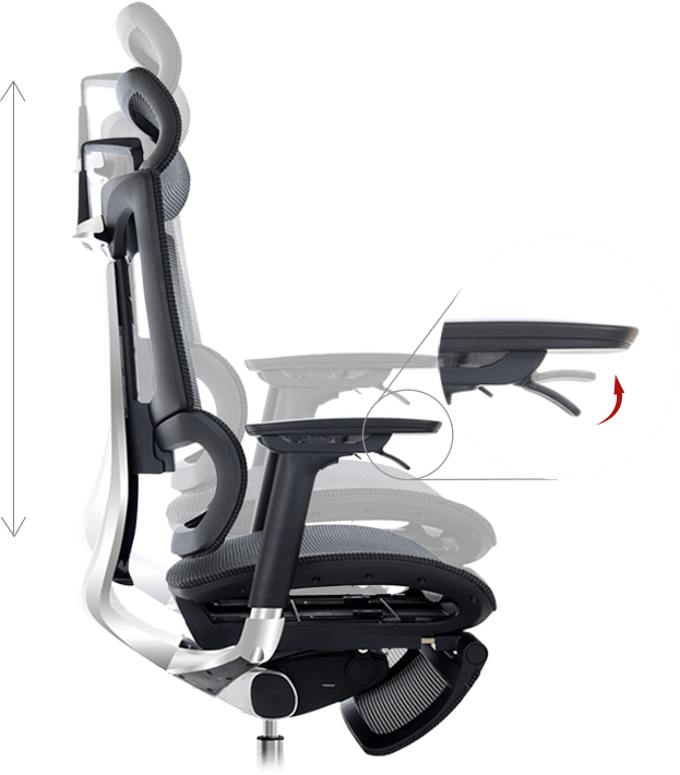 アームレストの高さを上下に調整することで、個々の体型や好みにフィットするポジションを見つけられます。適切な高さに調整することで、肩や首の負担を和らげ、長時間の作業でも快適な姿勢を保てます。