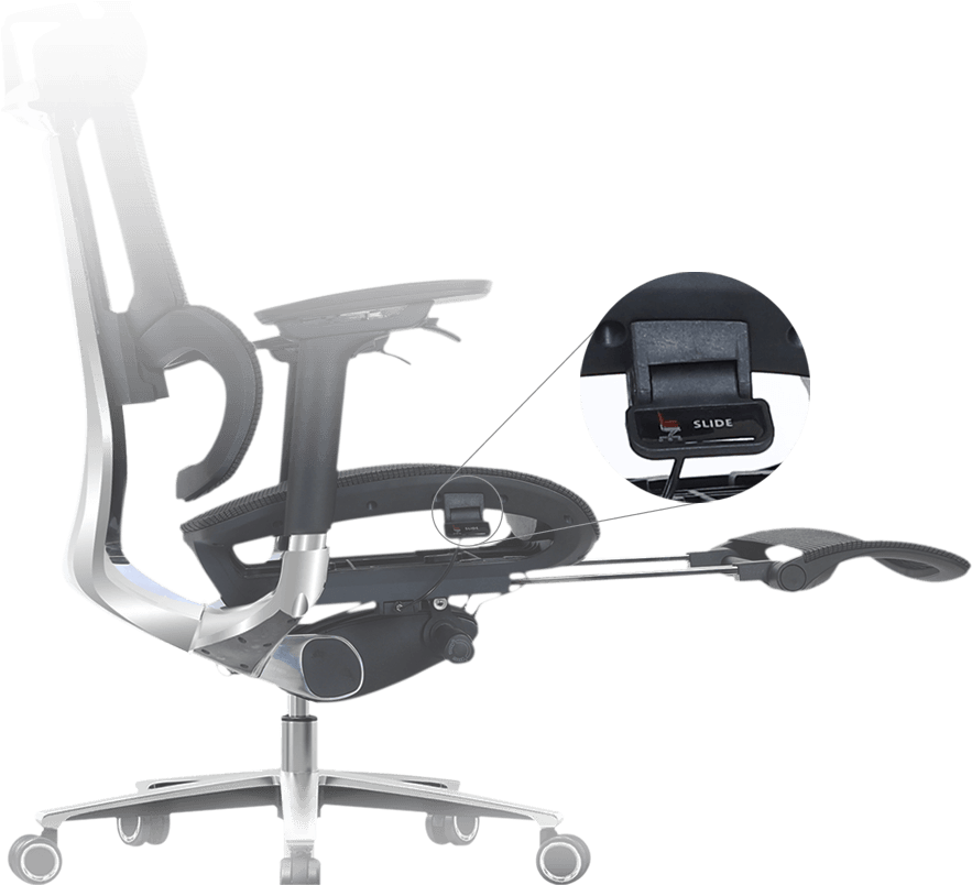 座面の位置を前後に調整することで、個々の体型や作業スタイルに合わせた最適なポジションを提供します。これにより、太ももや背中への圧迫を軽減し、よりリラックスした姿勢で作業ができるようになります。長時間座っても快適な座り心地を実現します。